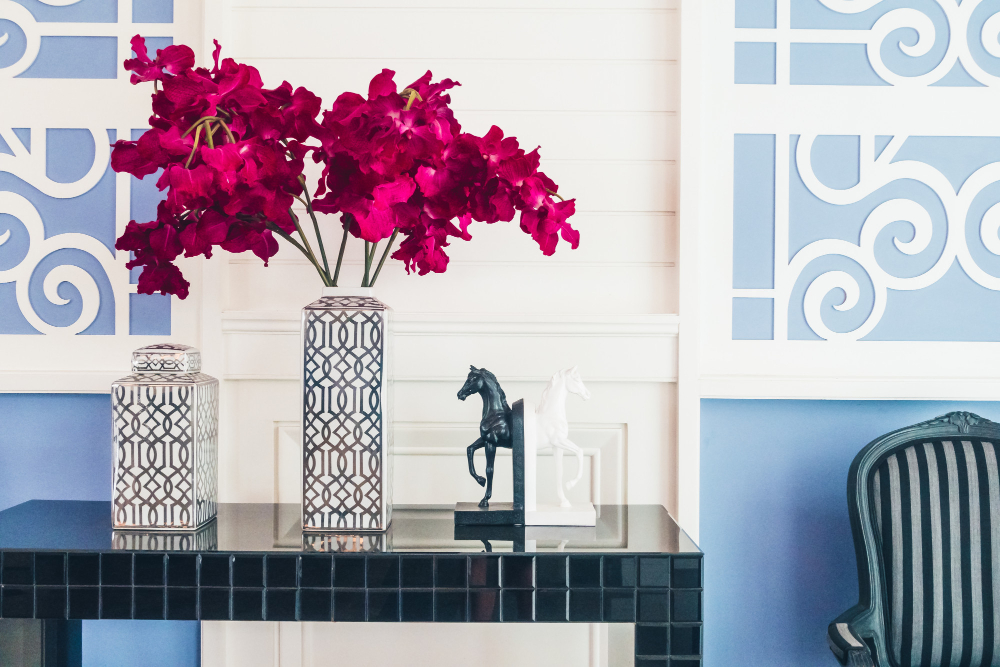 Pentru a adăuga un plus de autenticitate unui decor oriental, este important să folosești elemente decorative tradiționale. Oglinzile mari, cu rame aurite sau lucrate manual, sunt perfecte pentru a crea un punct focal într-o cameră. Vasele de ceramică cu motive orientale, lămpile de masă din bronz sau cupru și obiectele artizanale din lemn sau metal sunt alte accesorii ce pot transforma spațiul într-un loc elegant și plin de farmec. De asemenea, statui sau figurine inspirate din cultura asiatică, precum statuete de Buddha sau de elefant, pot adăuga un aer calm și meditativ în decorul casei tale.
